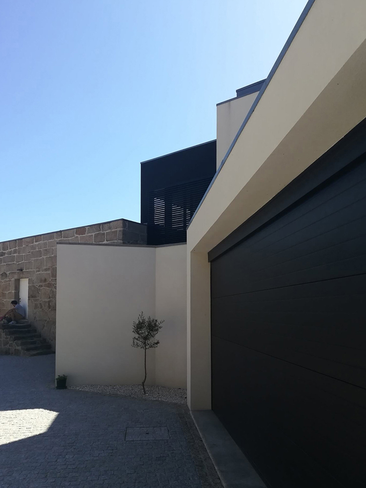 The allusion to the “black clay of Bisalhães” is perfectly noticeable, through the color of the coverings and exterior materials in the rearmost part of the facades and inside the house.