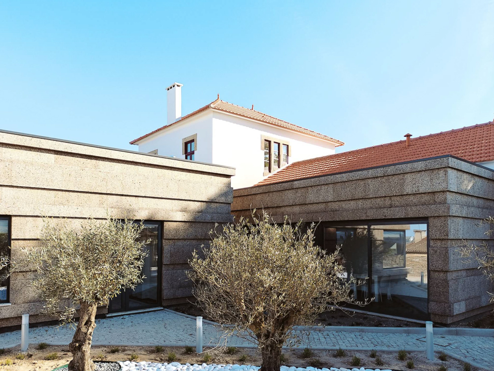The demolitions did not compromise the historical and architectural character of the building. Therefore, it was decided to maintain all the stereotomy and materiality of the building and in the expansion to make a difference through the choice of materials, namely cork as the exterior covering with a pattern of different dimensions both in height and thickness. The choice of this material was also thought of as an allusion to the cork boards that were used in schools to display drawings, notices, attendance sheets, among other elements that were considered relevant at the time.